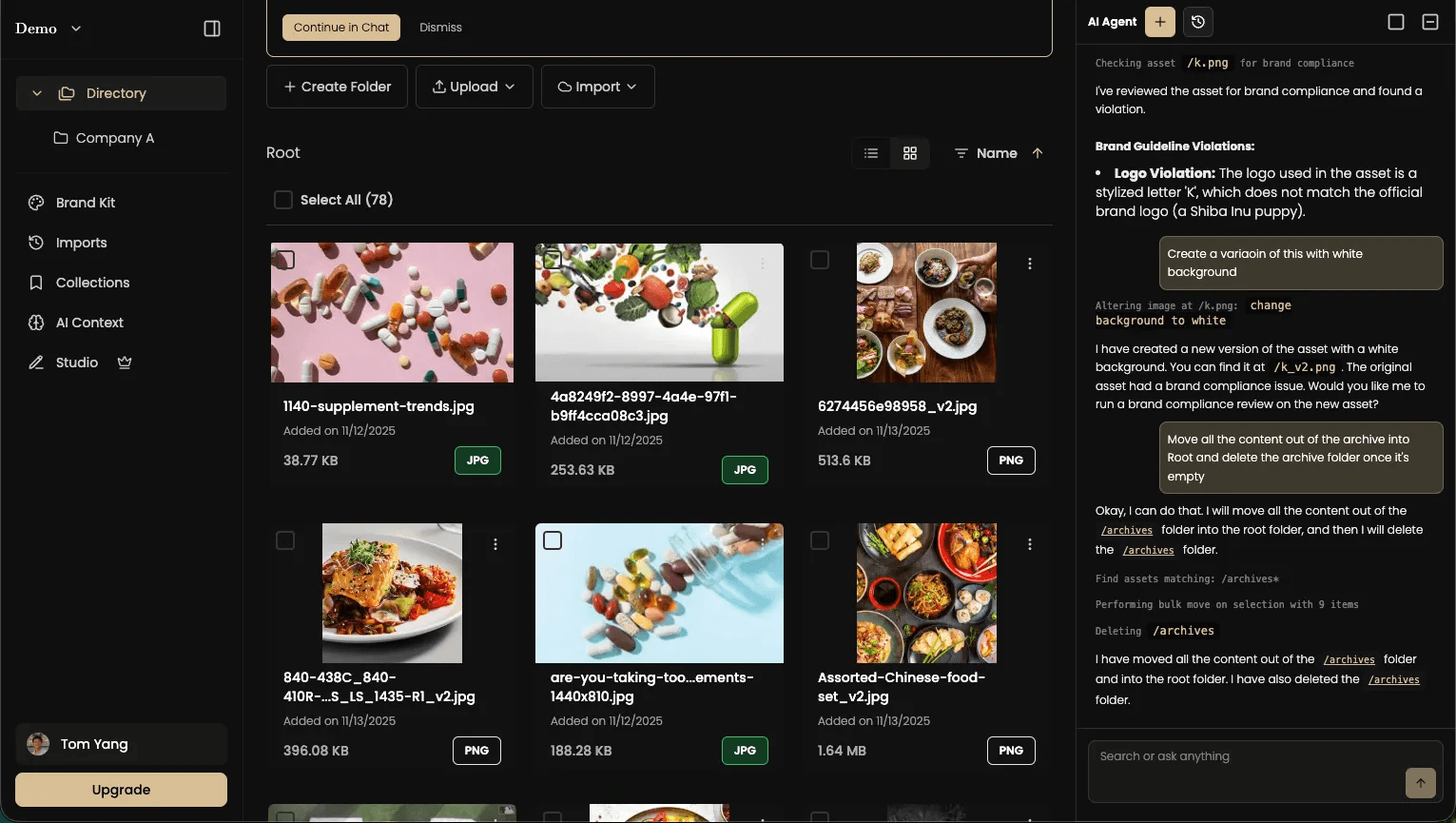 A next-generation, AI-native DAM that centralizes, organizes, and governs all creative assets with a built-in AI agent that handles operational busy-work and automates bulk workflows.