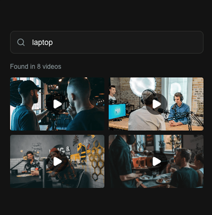 Search for specific moments across video by dialogue, people, objects, without manual pre-lagging.