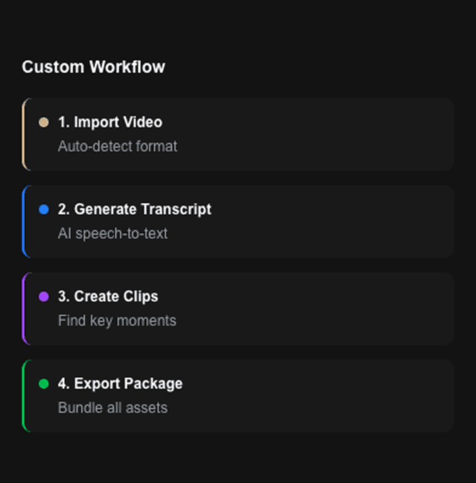 Automatically extract transcripts, create clips, and export selects based on custom workflows.